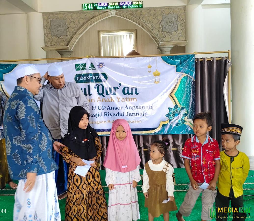 Pamekasan – Memperingati momentum Nuzululqur’an Pengurus Ranting Nahdlatul Ulama (PRNU) Desa Angsanah menggelar _khatm al-qur’an_ dan santunan anak yatim, Ahad (16/03/2025) di Masjid Riyadhul Jannah, desa Angsanah, Palengaan, Pamekasan.